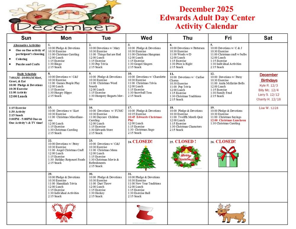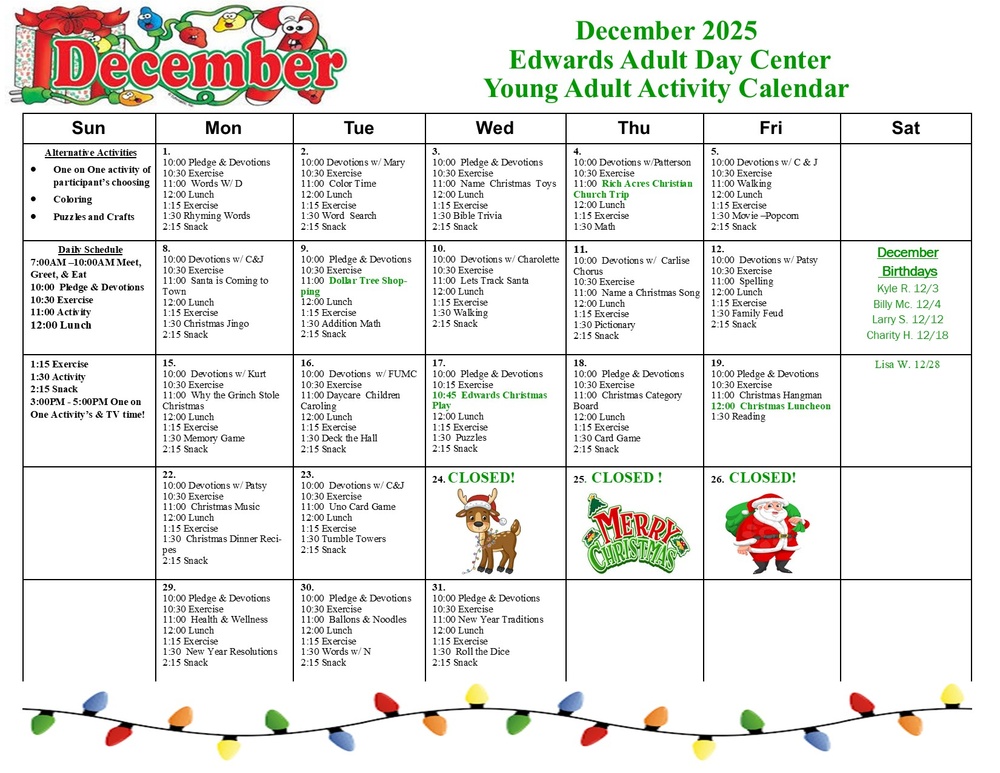DECEMBER ADULT ACTIVITY CALENDAR