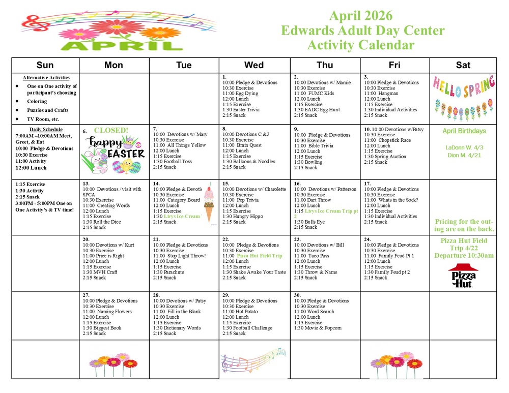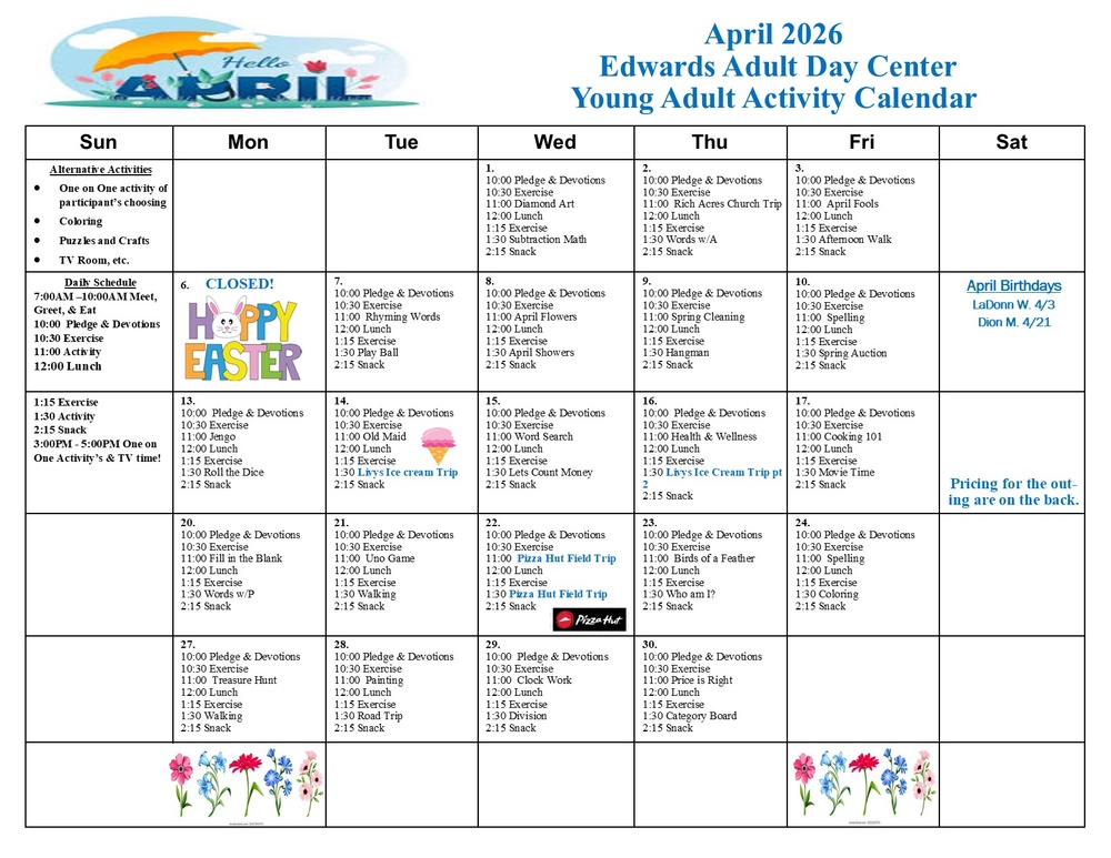 APRIL ADULT ACTIVITY CALENDAR